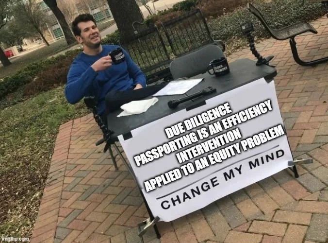 Passporting is an efficiency intervention applied to an equity problem. It moves compliance around the system faster. It does not change who bears the risk.